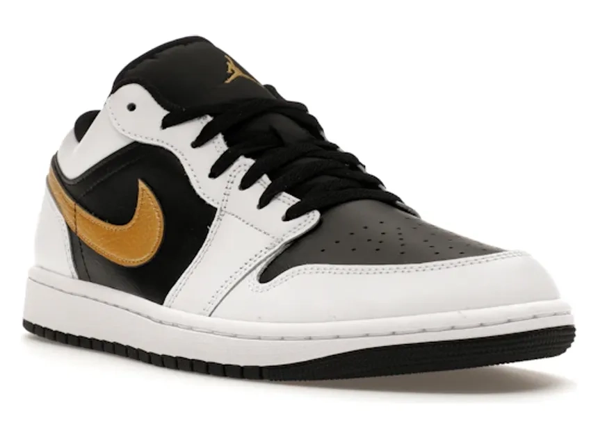 Jordan 1 Low White Black Metallic Gold Swoosh