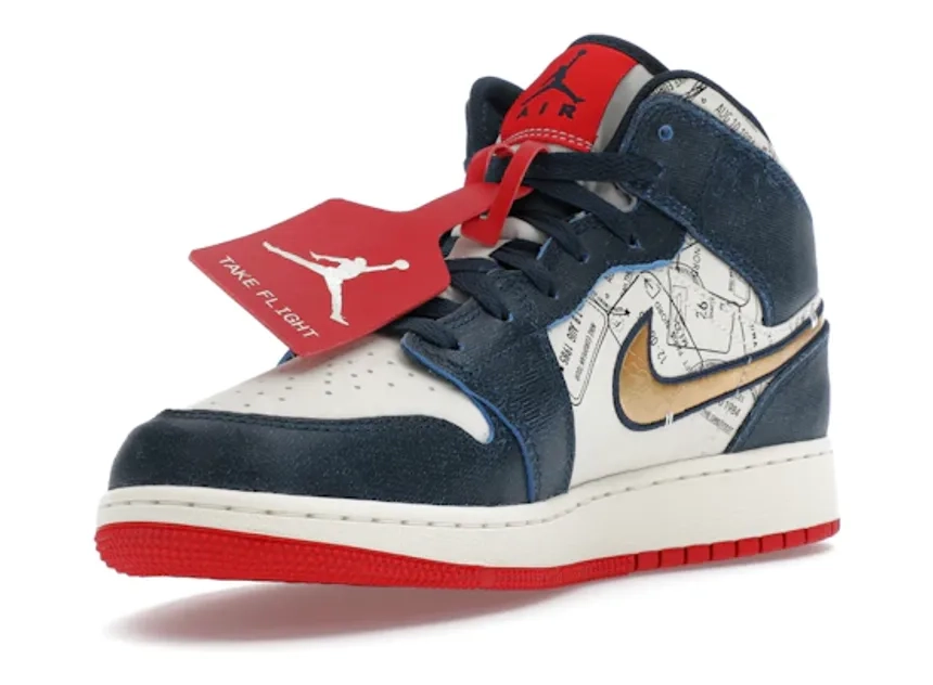 Jordan 1 Mid SE Armory Navy/Metallic Gold/Pale Ivory/Sport Red/Black (FN1353-400)