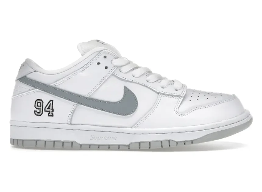 Nike SB Dunk Low Supreme 94 White Metallic Silver
